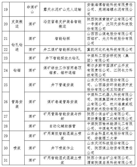 长征网址:《矿山领域机器人典型应用场景公示名单》公布