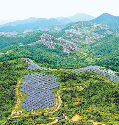 迎着春日的晨光,走进湖北随州广水市十里街道宝林寺村,满是光伏板的向阳山坡,像一面巨大的镜子,在阳光下熠熠生辉。